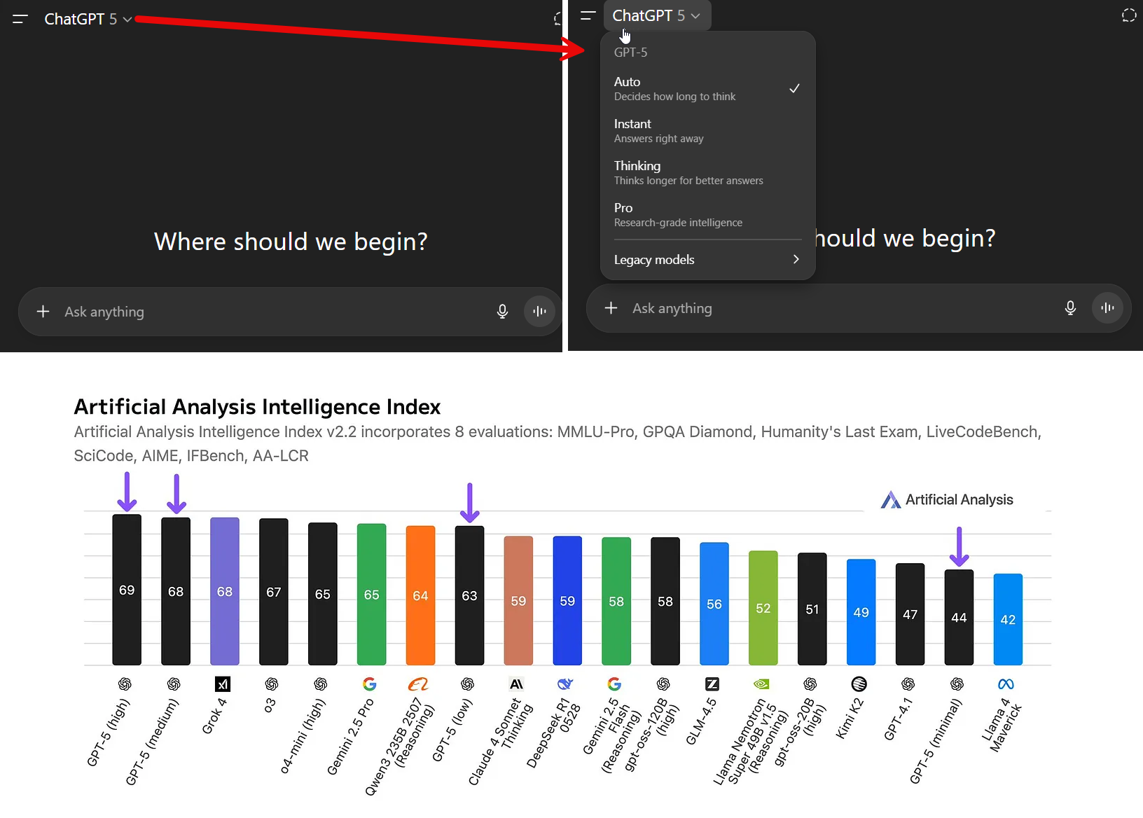 GPT-5 was supposed to solve both of these problems, which is partially why its debut was so messy and confusing. GPT-5 is actually two things. It was the overall name for a family of quite different models, from the weaker GPT-5 Nano to the powerful GPT-5 Pro. It was also the name given to the tool that picked which model to use and how much computing power the AI should use to solve your problem. When you are writing to “GPT-5” you are actually talking to a router that is supposed to automatically decide whether your problem can be solved by a smaller, faster model or needs to go to a more powerful Reasoner.